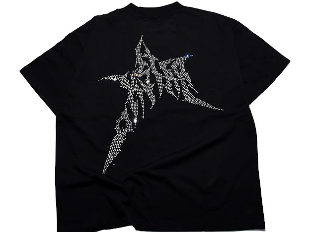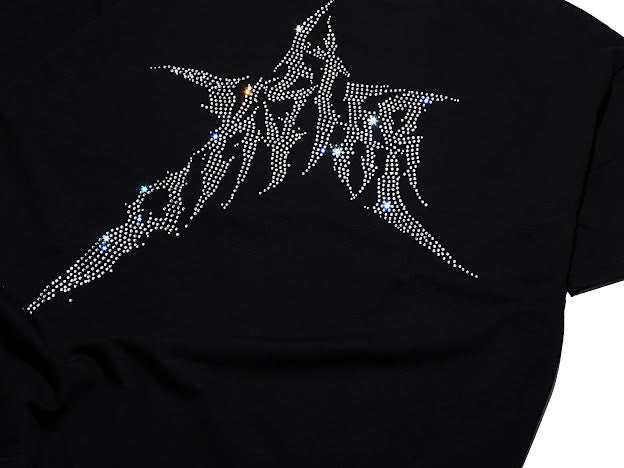 Esta playera negra combina la comodidad del algodón premium con el brillo exacto de cristales que transforman la insignia de la marca en un emblema exclusivo. Una pieza creada para quienes no siguen tendencias, las representan.