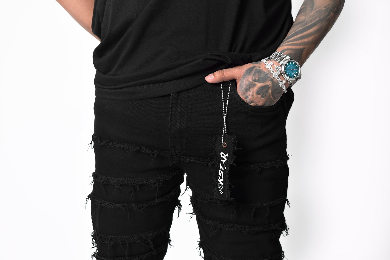 El pantalón corte moderno color negro de la colección 2025 tiene un ajuste ligeramente entallado y se ensancha suavemente hacia el tobillo, ofreciendo una silueta limpia y actual. El tono negro, con lavados sutiles, aporta un aire fresco y versátil. Confeccionado en mezclilla de alta calidad , es cómodo y flexible, ideal para looks casuales o más sofisticados. Los detalles minimalistas y los acabados de alta calidad lo convierten en una pieza clave para esta temporada. No sigas el camino marcado crea el tuyo usando nuestras prendas exclusivas.