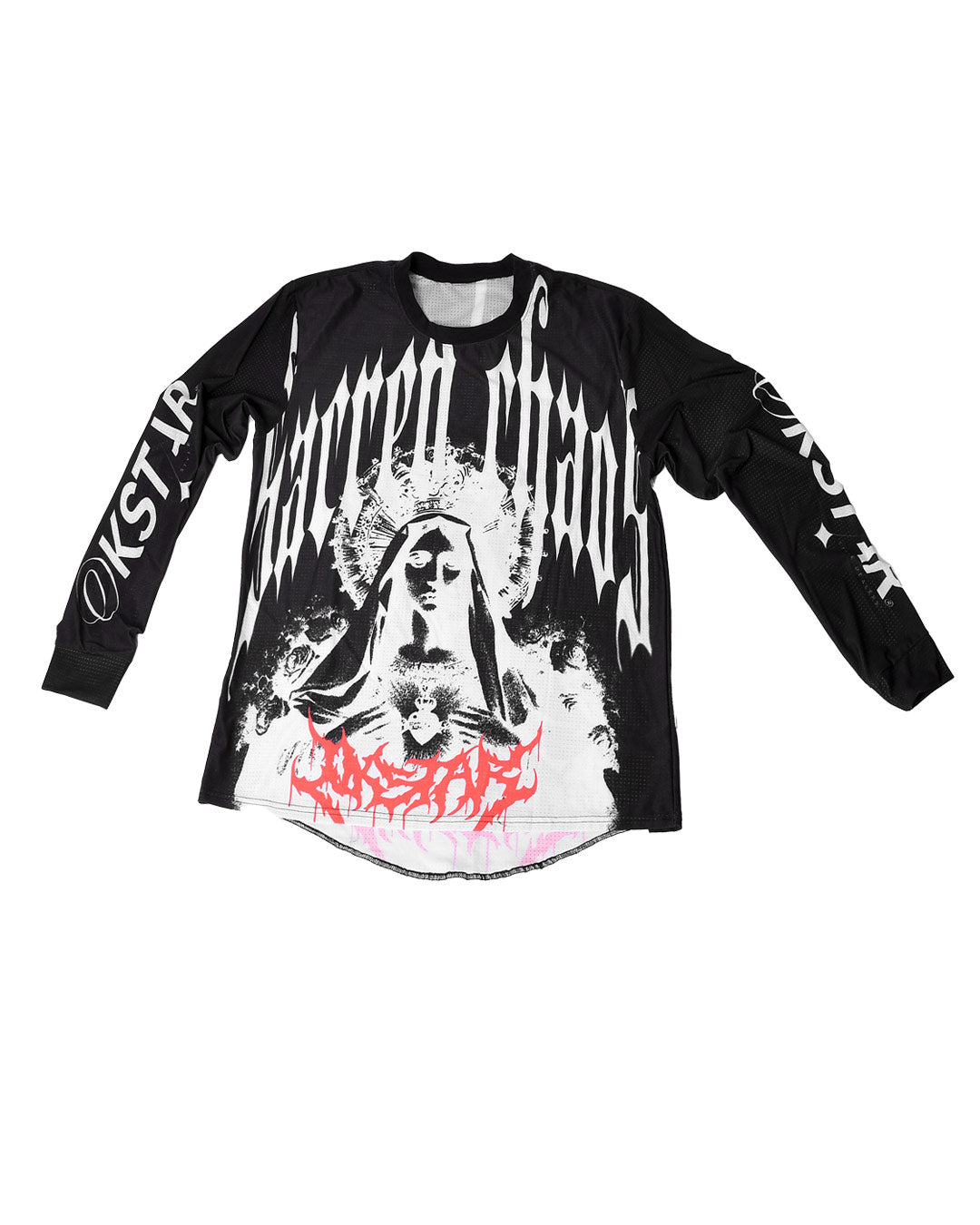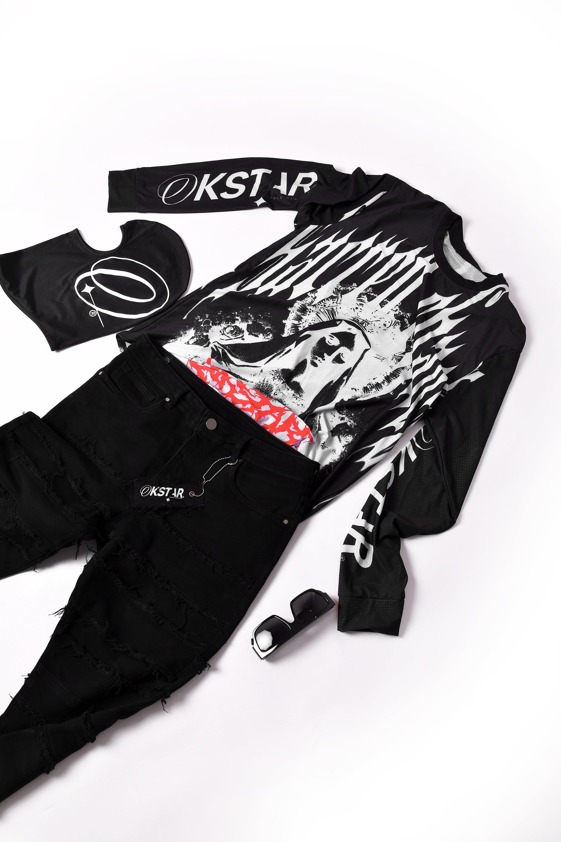 La playera okstar en su versión roja con negro es el equilibrio prefecto entre rendimiento y estilo , con un diseño audaz y vibrante ,esta playera refleja la energía y pasión de quienes viven al máximo , su combinación de colores con el rojo dominante y detalles en negro le da un toque agresivo y deportivo que no pasa desapercibido.